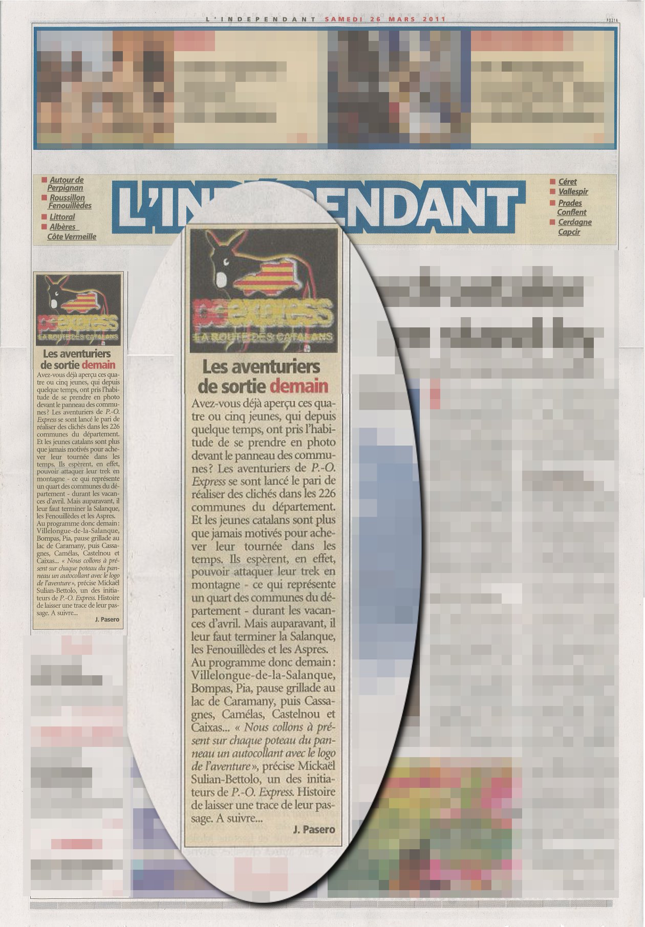 Merci ŕ Jennifer Pasero L'indépendant10 mars L'indépendant19 mars L'indépendant 26 mars L'indépendant 1er avril L'indépendant 26 avril L'indépendant 4 mai L'indépendant 7 mai |