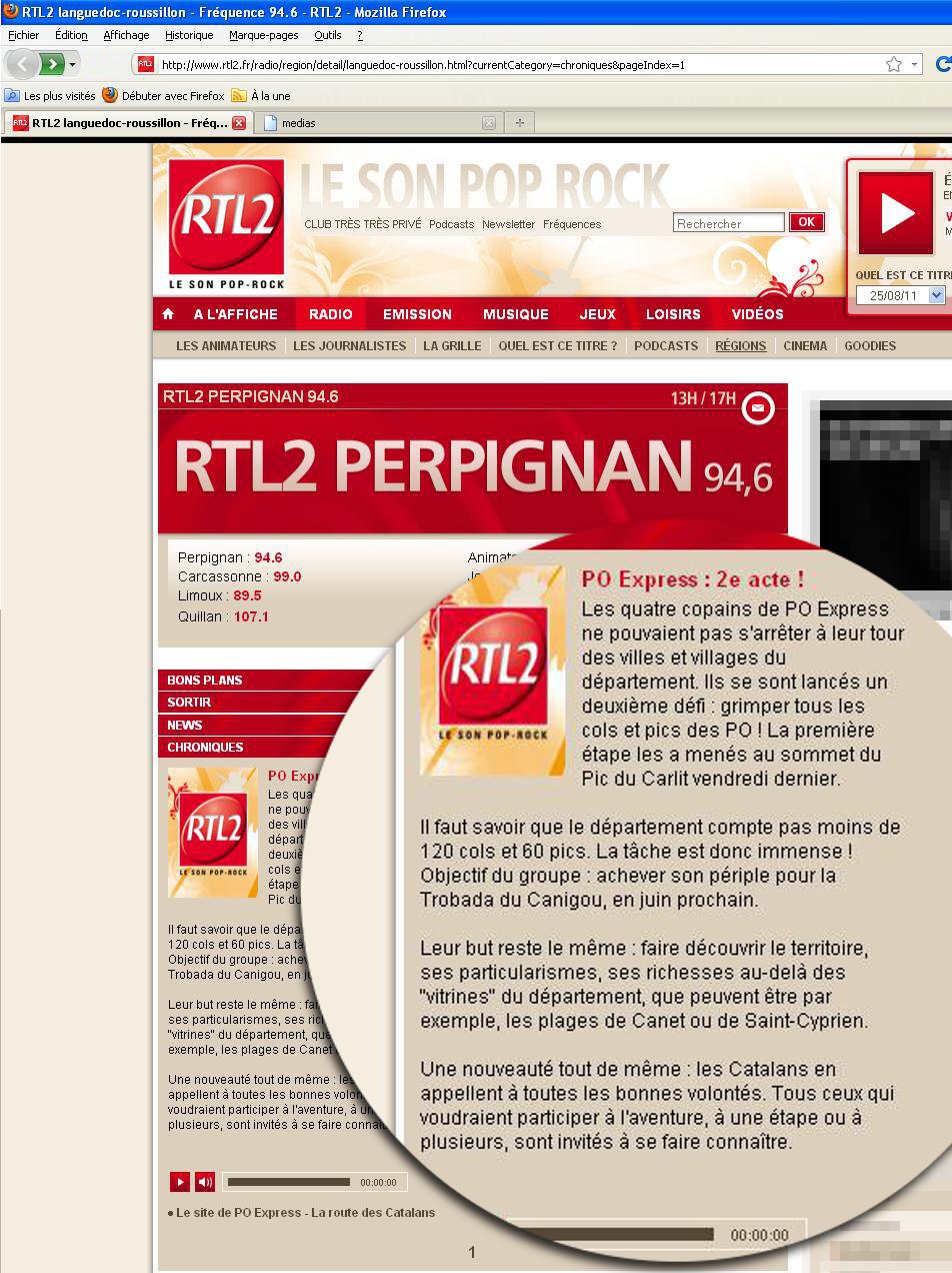 RTL2Marie Burban5 mai 2011Littoral FM Julien De Jong5 mai 2011France Bleu Roussillon Cyrille Manière5 mai 2011 |